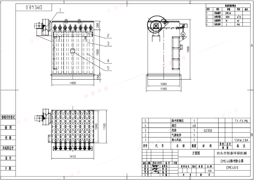 設(shè)備型號(hào) 處理風(fēng)量(m³/h ) 濾袋數(shù)量(只) 過(guò)濾面積(㎡) 電機(jī)功率(Kw)