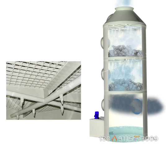 廢氣噴淋凈化塔的工作原理是將氣體中的污染物分離成無害物質(zhì),以達到凈化氣體的目的,屬于差動接觸逆流,塔體填料是氣液接觸的基本組成部分。進入塔體的氣體進入塔體后,氣體進入填料層,填充層有頂部的噴淋液和前面的噴淋液,并在填料上形成一層液膜。當氣體流過間隙時,它與填充物接觸液膜并進行吸收或中和反應(yīng)。填充層可以提供足夠大的表面積。氣體的流動,并不會造成太大的阻力,氣體吸收或中和后被除霧器收集,從塔外的出風(fēng)口排出。
