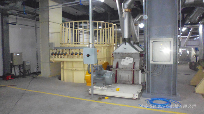 除塵器的切向入口起到旋風分離器的作用,使空氣旋轉(zhuǎn)并將重顆粒移動到壁上,然后進入料斗。細顆粒被收集在過濾袋上。