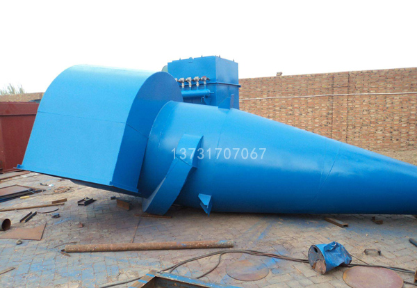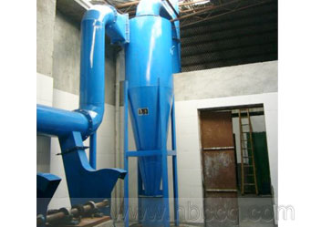 含塵氣體從進(jìn)口處切向進(jìn)入后,氣體在獲得旋轉(zhuǎn)運動的同時,氣流分成上、下分開,形成雙旋渦運動,粉塵在排氣底部即雙旋渦的分界處產(chǎn)生強烈的分離作用。較細(xì)較輕的塵粒由上部旋渦氣流帶往上部,在頂蓋下面形成強烈旋轉(zhuǎn)的灰環(huán),產(chǎn)生塵粒的聚集,并被從特設(shè)的旁路分離室上部洞口引出,經(jīng)旁路分離室下部螺旋槽,從除塵器外壁回風(fēng)口切向引入除塵器筒體下部與內(nèi)部氣流匯合,粉塵被分離而落入灰斗。另一部分較粗重的粉塵顆粒則在下旋渦氣流帶動下,沿除塵器下段經(jīng)由上旋渦氣流的類似過程,將粉塵分離并進(jìn)入灰斗。