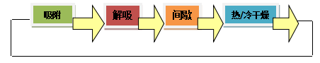 下面的圖顯示了常規(guī)一級吸附/脫附裝置每個吸附器的工藝過程變化順序: